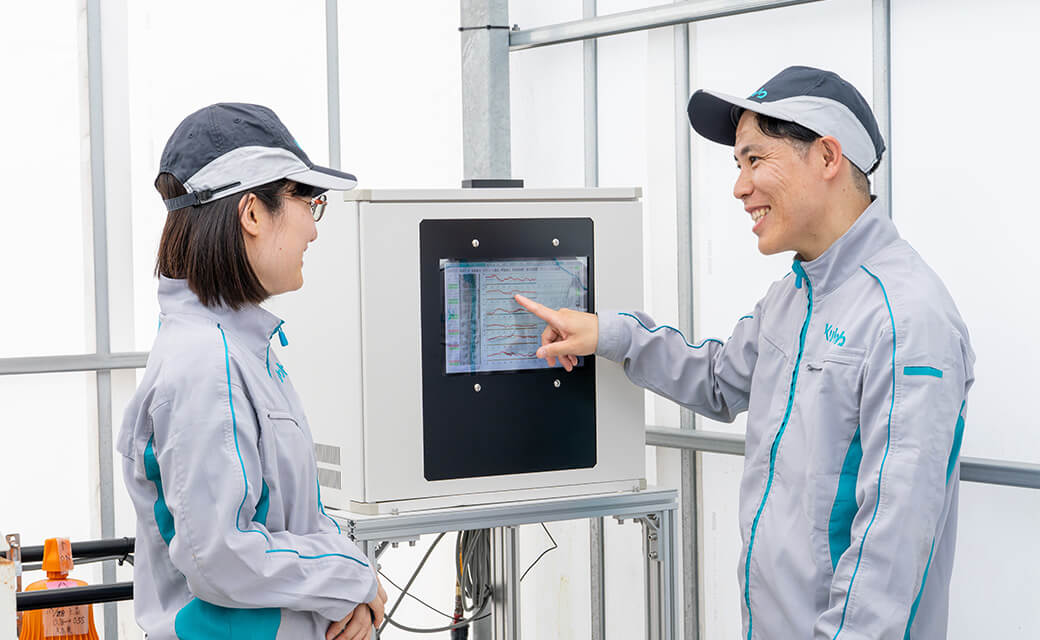 Kubota has turned its focus to high-sugar tomatoes, which have sugar content of 8 degrees Brix or greater. High-sugar tomatoes are a prime example of high-value-added crops for their strong profit potential. However, cultivating them requires advanced controls for both water and temperature. Because watering impacts the tomato’s sugar content, it must be especially precise and demands a greater level of experience and effort than conventional tomato farming.