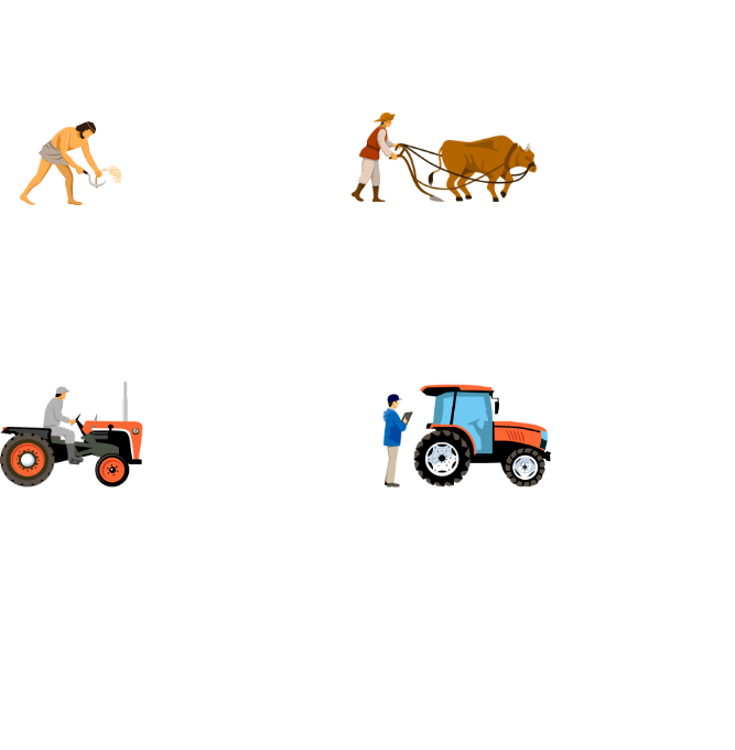 Progress in civilization has had a great impact on the shape of societies. Beginning with ancient hunter-gatherer societies, we have passed through agrarian, industrial and information societies, and are now on the verge of moving towards a new society. Agriculture, which supports our food, has also changed in form along with the development of society. We will introduce how agriculture has progressed in each era, and Kubota's vision for the future of food and agriculture.
