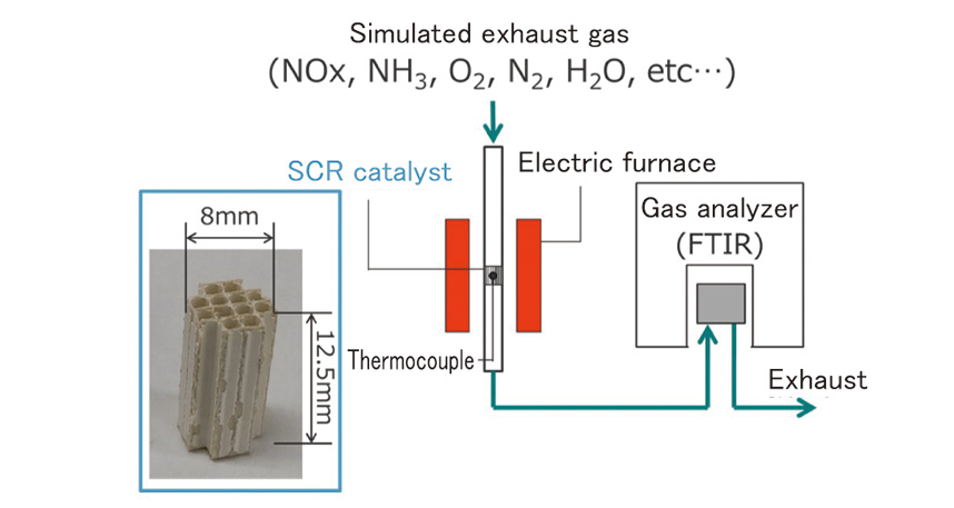The after-treatment system of the V3, 08, and 09 series engines, covering an output range of 56-155 kW, has adopted “DOC+DPF/SCR” in compliance with the EPA/CARB Final Tier 4 emission regulations implemented in 2014. The degradation of the SCR catalyst directly affects exhaust gas performance. We conducted research on the optimal SCR catalyst for general-purpose engines and developed a new copperbased catalyst with high robustness against catalyst degradation. The development of the new catalyst required long-duration endurance testing for degradation evaluation, but we utilized a degradation prediction method. This allowed us to shorten the development time.