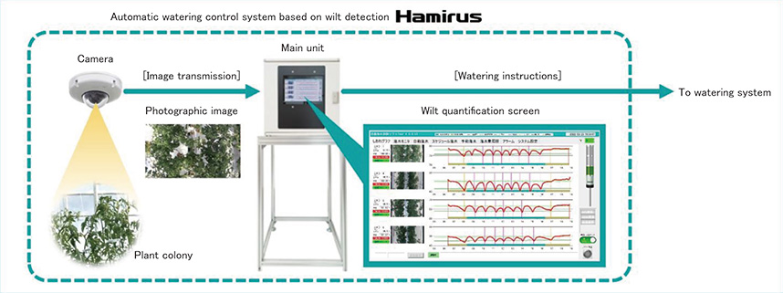 In recent years, extreme weather events have become frequent, and climate change, such as rising temperatures, has become increasingly evident. As a result, the importance of greenhouse horticulture, which can control the environmental conditions, has grown significantly for ensuring a stable food supply. Additionally, due to factors like an aging population, the number of farmers is decreasing, leading to a demand for more efficient and labor-saving production methods. In response to this situation, Kubota launched its first in-house product for greenhouse horticulture, the automatic watering control system based on wilt detection (Hamirus), in October 2022. This system automates watering management for high-sugar tomatoes, contributing to labor savings in watering management and stable production. This article introduces the technology behind it.