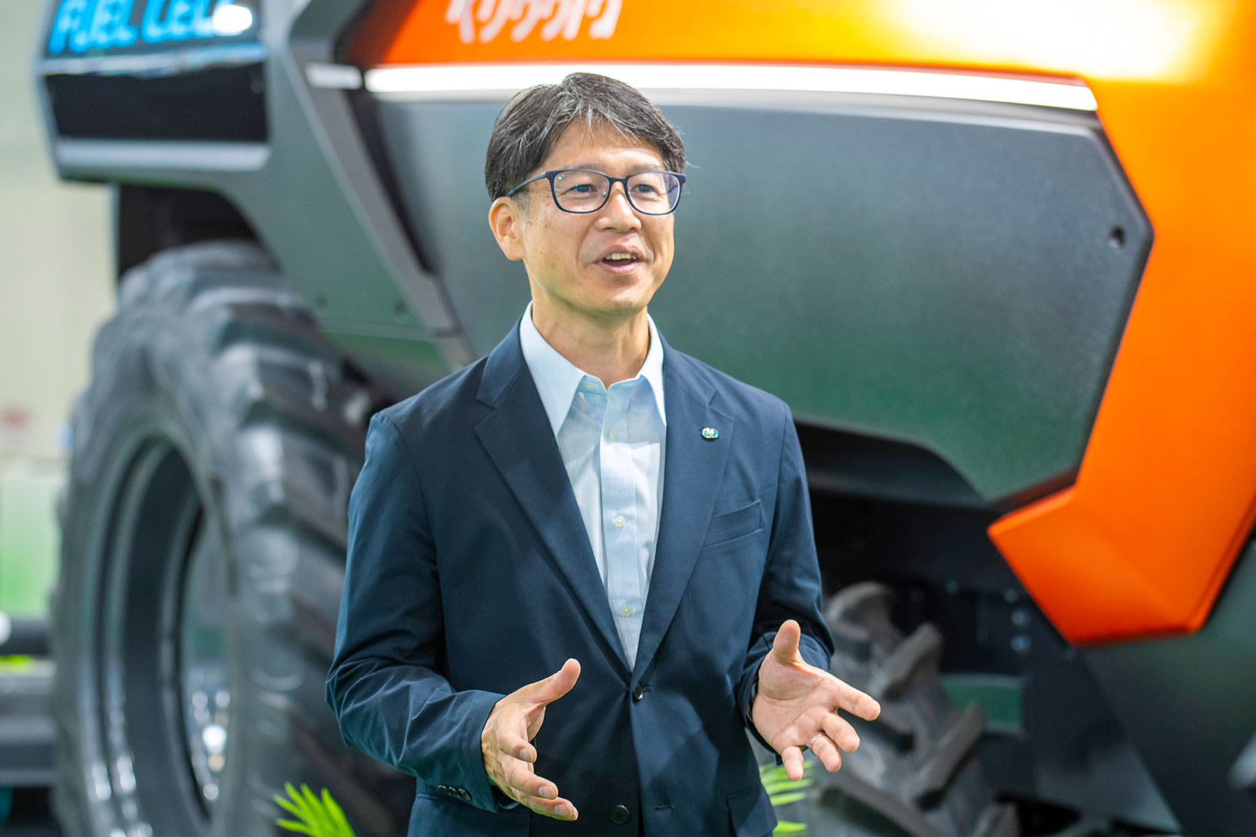 Yuki Minamide, Deputy Manager of the Technology Innovation R&D Department II, joined the development team for the new hydrogen fuel cell tractor project launched within the company in 2021.