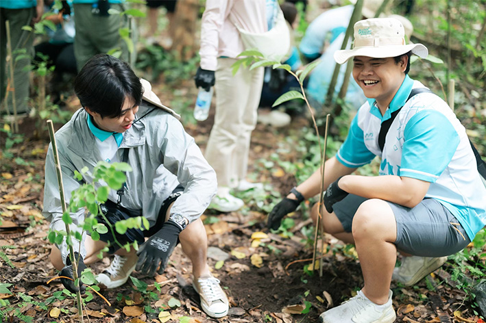 The 2024 endeavor took place in Namtok Chet Sao Noi National Park in Saraburi Province, Thailand, where 300 perennial plants were planted, 1,000 tree seeds were sown with wooden slingshots, and 100 kg of fertilizer made from our zero food waste project was donated.